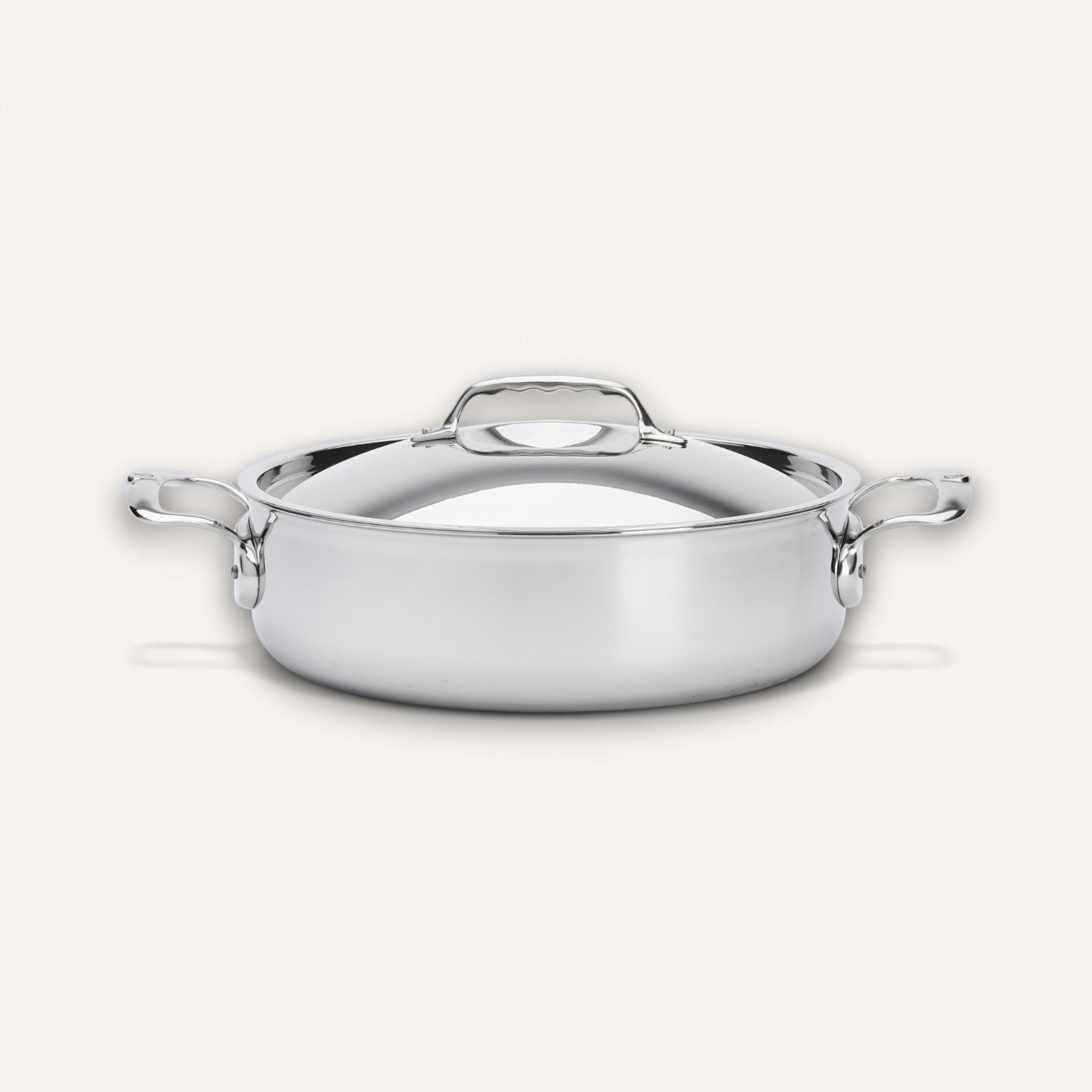 The two riveted stainless steel handles ensure a secure grip when moving from stovetop to oven, and the matching lid locks in moisture and flavor. With its elegant mirror-polished finish and exceptional heat control, this braiser performs as beautifully as it looks.