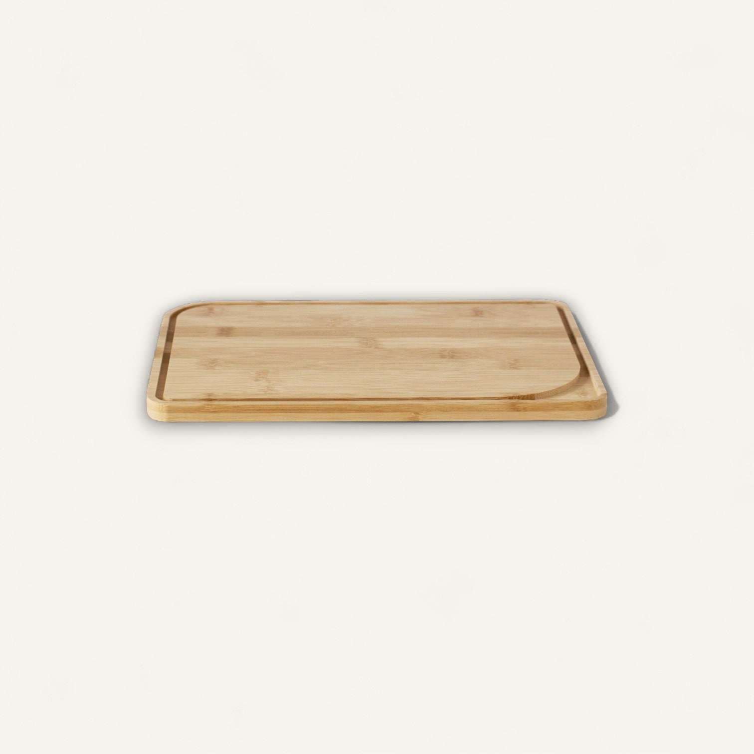 The Pebbly bamboo cutting board is made for everyday prep with a calm, natural feel. The smooth bamboo surface is gentle on knives and sturdy enough for chopping vegetables, slicing fruit, or carving cooked meats. Along the edge, a carved juice groove collects liquid before it reaches the counter, keeping the workspace tidy as you cut.