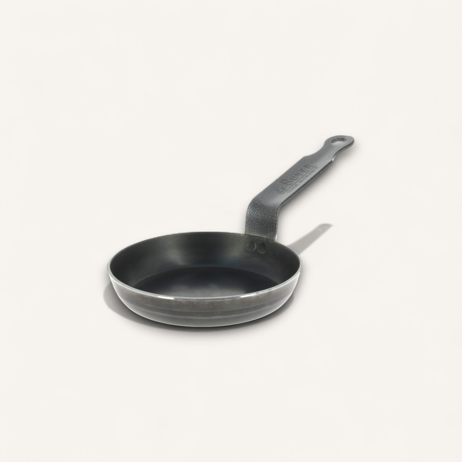 Our 4.75" Blue Carbon Steel Egg Pan is perfect for those who enjoy precisely sized, single servings of breakfast favorites. This pan's petite size is ideal for cooking one egg or crafting small pancakes and blinis with uniform heat distribution. Made from blue carbon steel, it quickly reaches the desired temperature and maintains heat evenly, ensuring your meal cooks perfectly every time. The natural nonstick surface improves with each use, making cooking and cleanup a breeze.