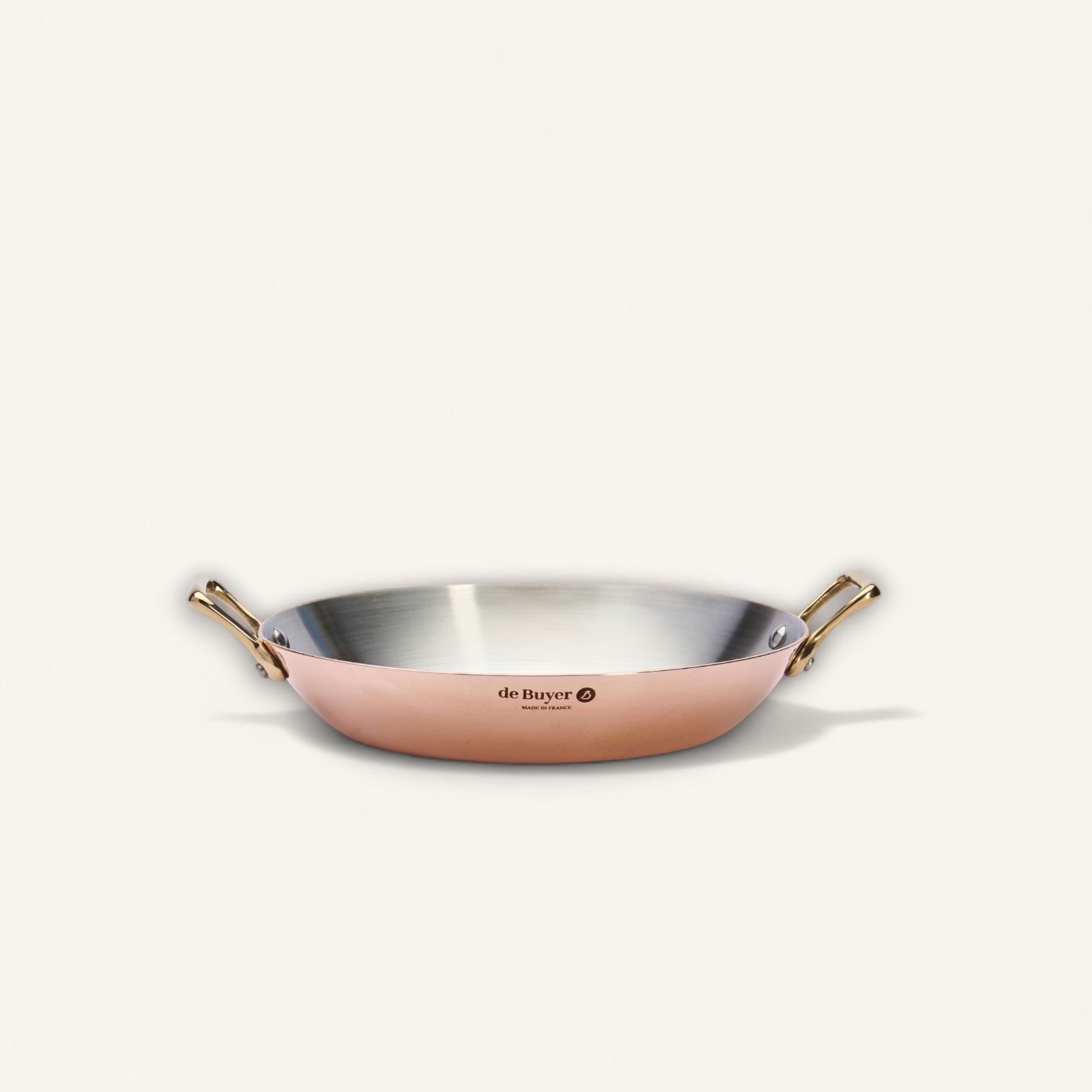 Add a touch of luxury to your kitchen with the Inocuivre Service Round Pan. The quality of this pan is unmatched, composed of 90% copper and 10% stainless steel. This copper cookware is suitable for use with all types of cooktops, except induction . The copper body provides rapid heat conductivity and control, while the stainless steel lining protects against the elements of copper.