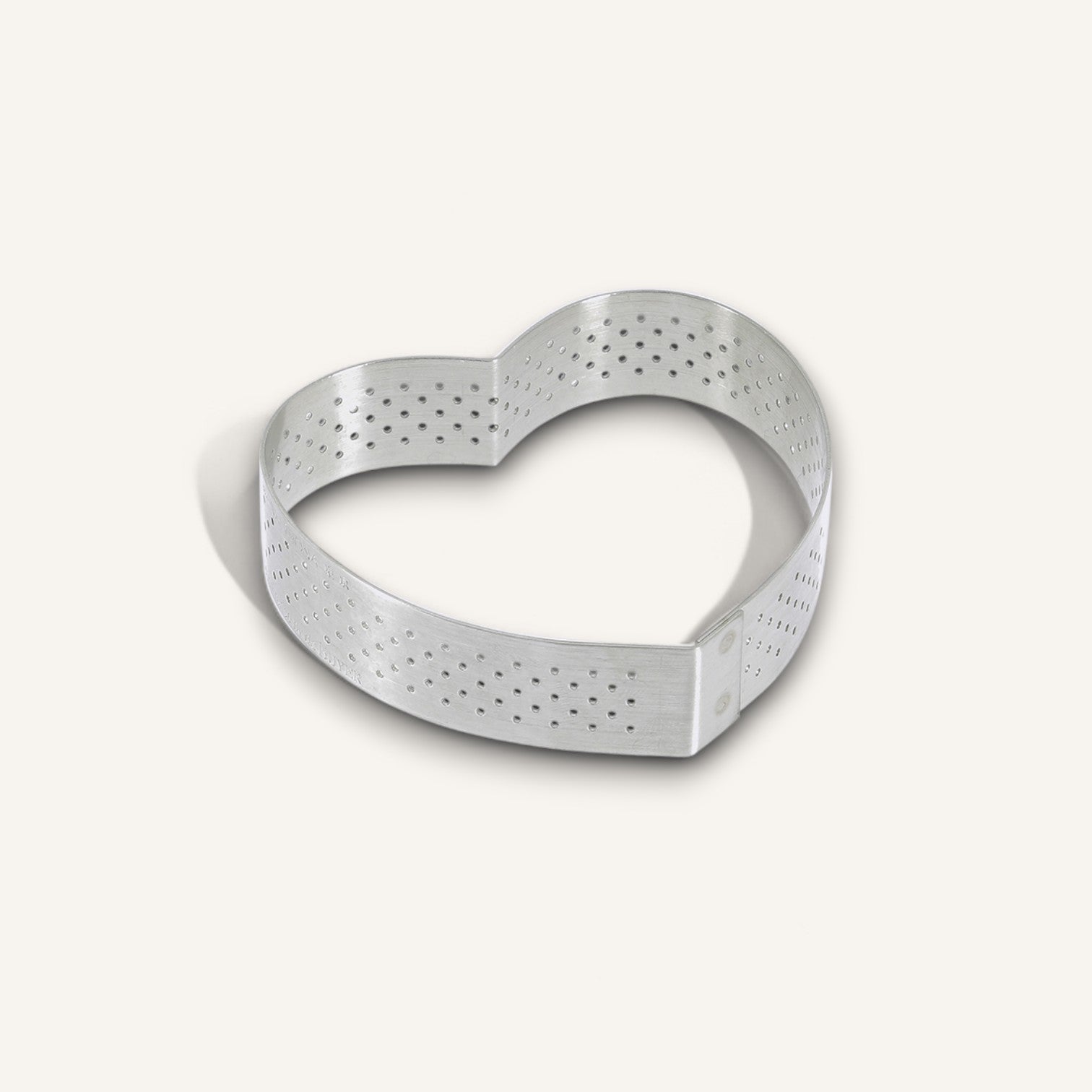 The heart shaped perforated baking ring brings a bit of charm to the kitchen while still delivering professional level results. Made from durable 18/20 stainless steel, it holds its shape beautifully and gives doughs clean, defined edges. The small perforations along the sides encourage air circulation, which helps pastries bake evenly and develop crisp, golden borders.