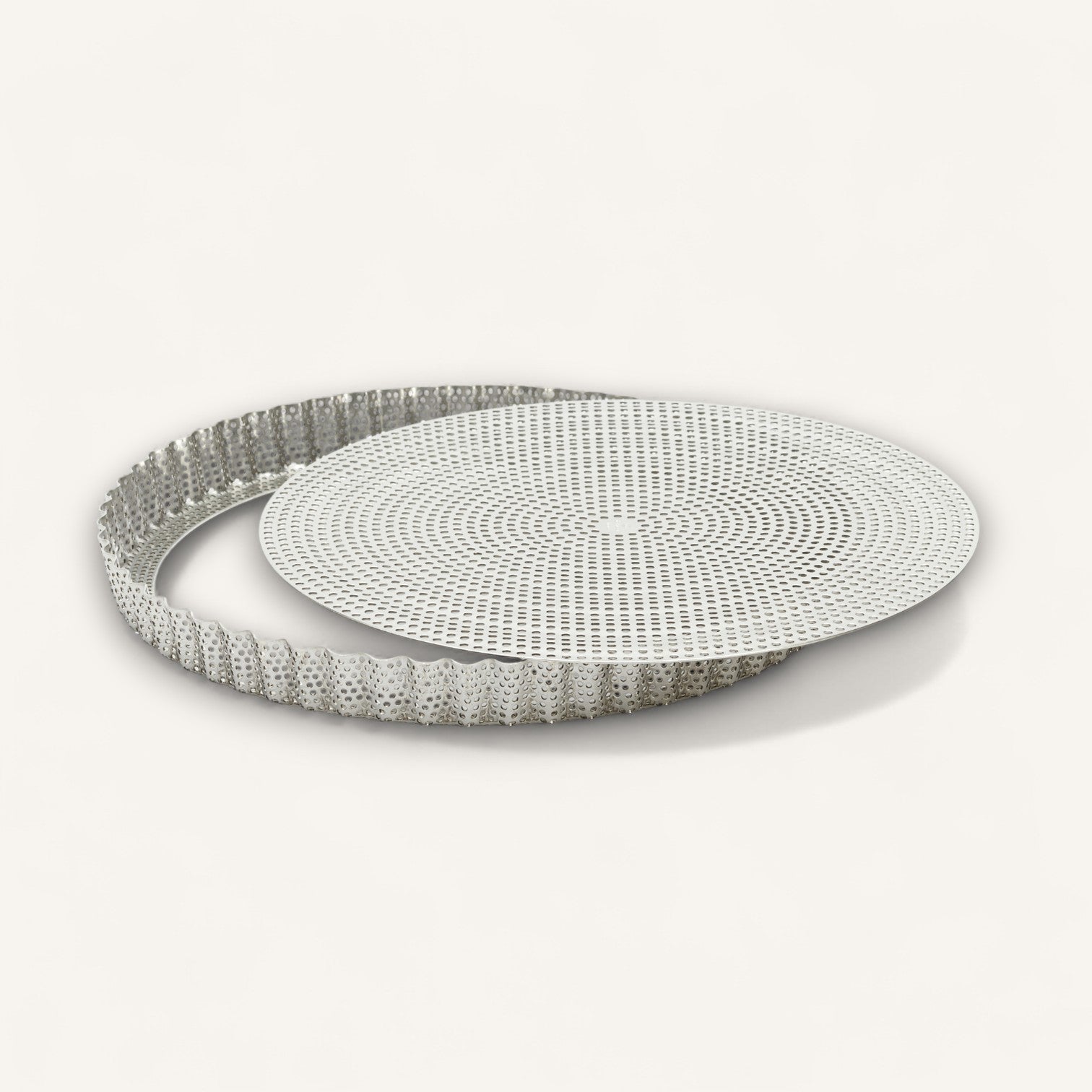 - Perforated Tart Ring – Made from durable stainless steel with micro-perforations for optimal airflow, ensuring crisp, evenly baked crusts. Sides are 1" high.