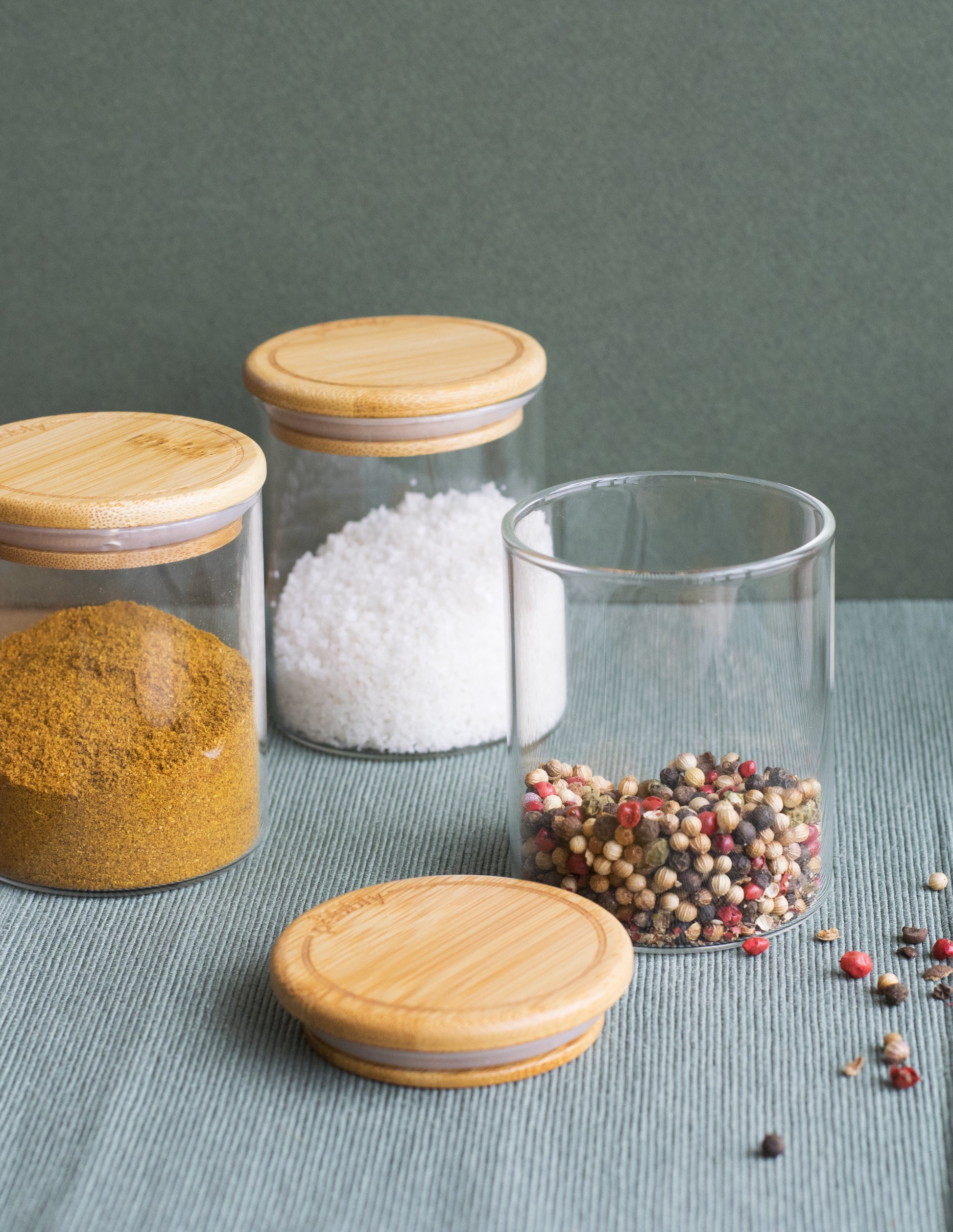 Round Glass Spice Cannisters with Bamboo Lids 3-Pack
